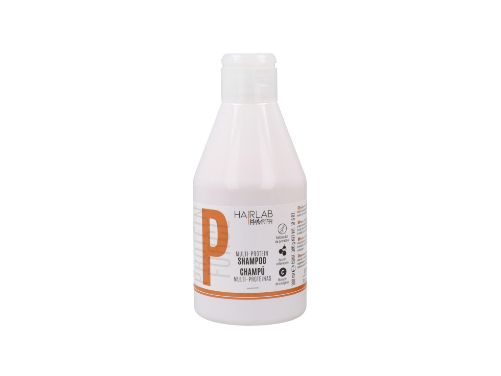 Salerm HAIR LAB Protein Force šampon s proteiny (Multi-Protein Shampoo/Champú Multi-Proteinas) je šampon speciálně určený pro použití po technických ošetřeních, aby dodal vlasům chybějící bílkoviny (proteiny). Ideální pro poškozené, zničené a suché vlasy. Složení pro jemné a citlivé mytí s hydrolyzátem bílkoviny keratinu a kolagenu s výsledkem ochrany, lesku, snadné úpravy a plnosti.